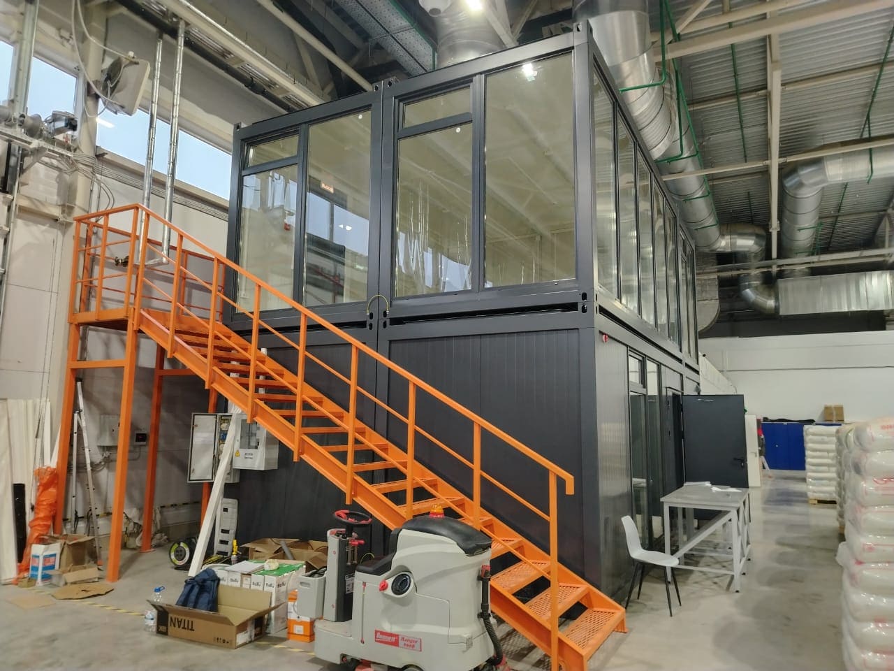Офис на базе 6 модулей "Звезда" внутри производственного цеха
